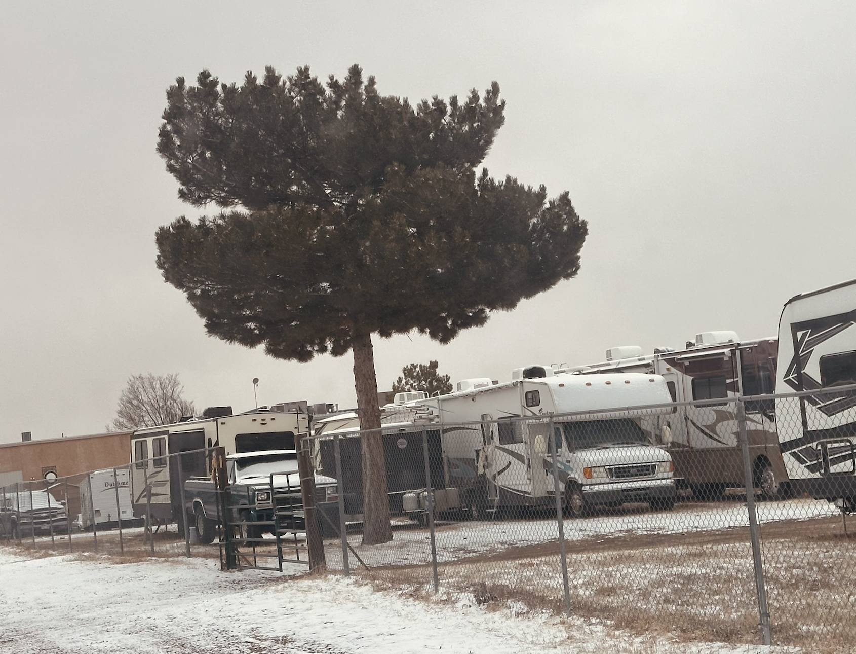 open storage lots for cars, trailers, RV's, and boats (placement depends on size of vehicle)